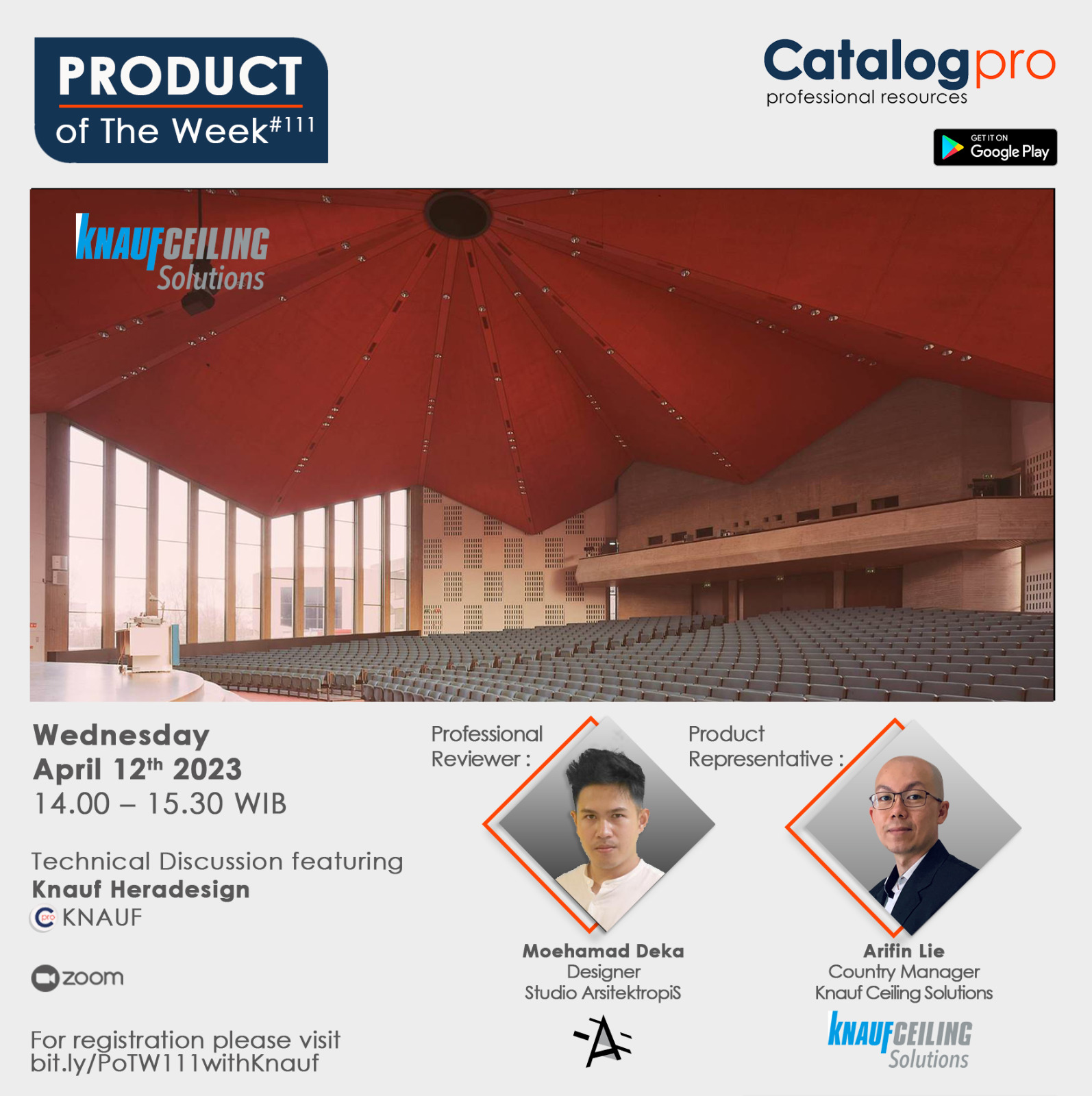 Product of The Week Invitation: Heradesign by Knauf Ceilings Solusi Akustik untuk menciptakan ruang yang nyaman dengan estetika ruang yang tidak terbatas. Arifin Lie (Country Manager Knauf Ceiling) dan
