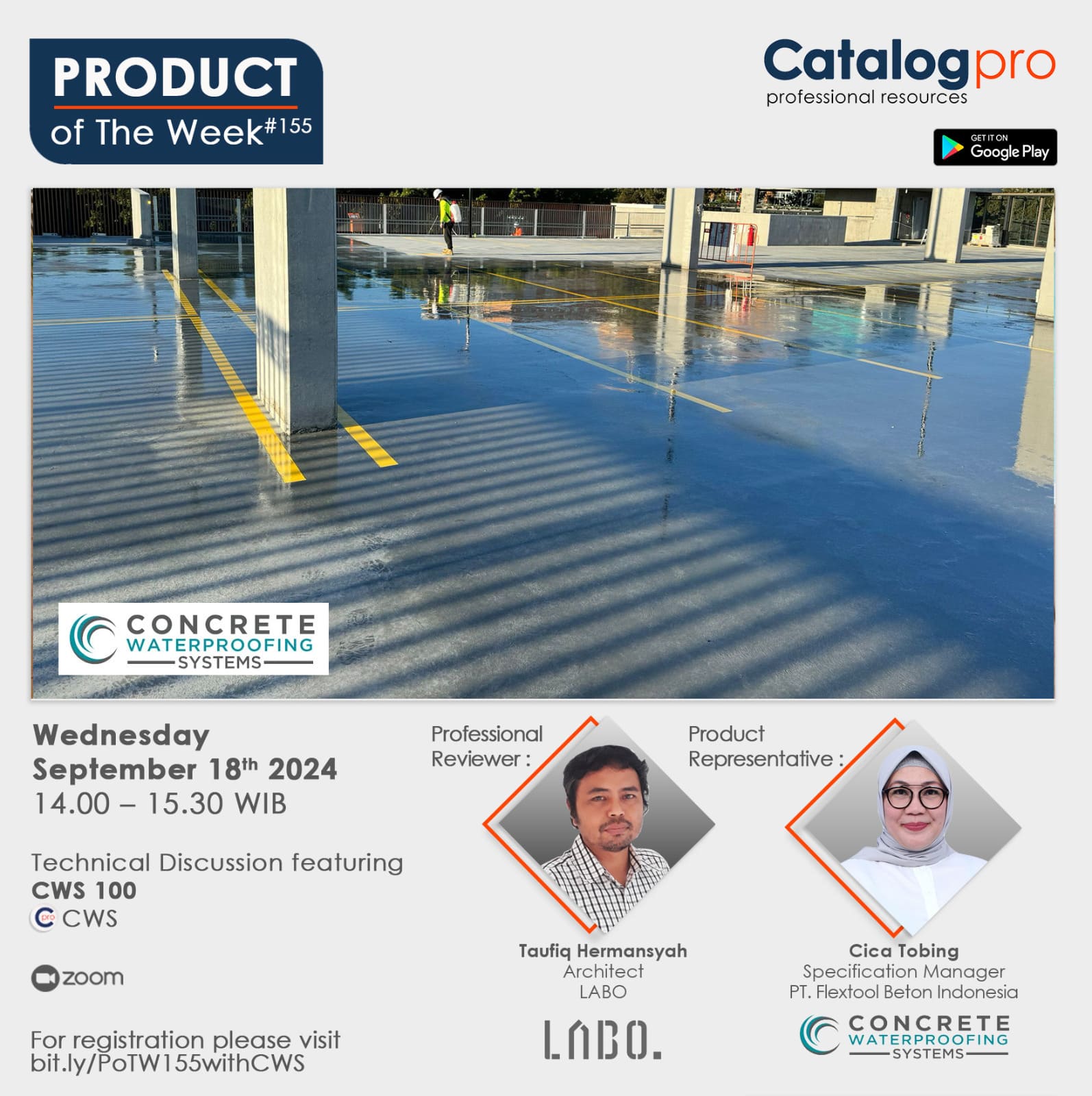 Product of The Week Invitation: CWS 100 Solusi Waterproofing yang memberikan perlindungan beton seumur hidup. Cica Tobing (Specification Manager PT. Flextool Beton Indonesia)